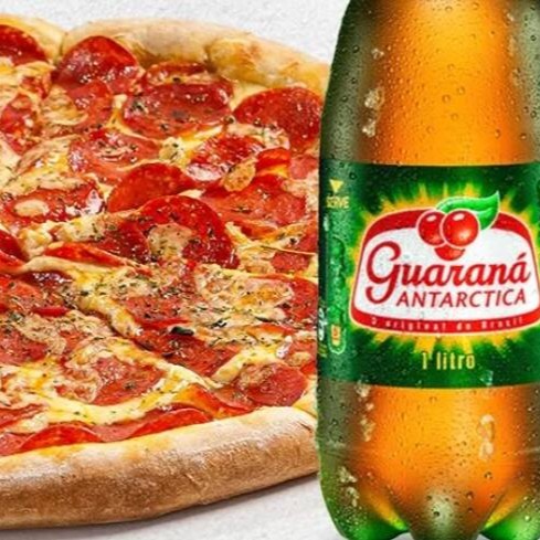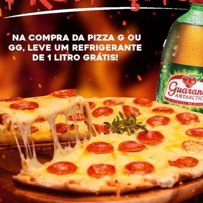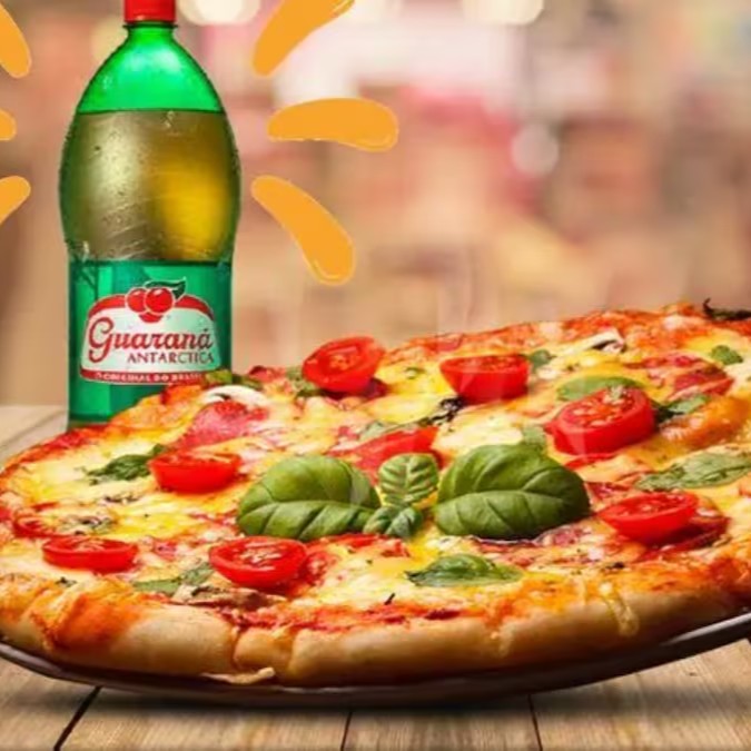 1 Pizza Gigante 8 Fatias + Refrigerante 1l Grátis.