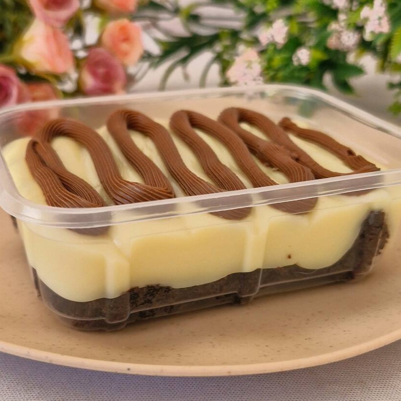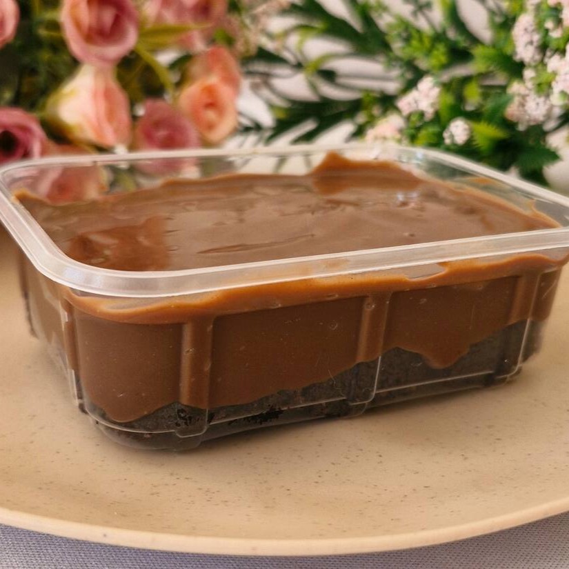 Delicioso pote recheado com brownie, brigadeiro cremoso de chocolate e ganache de chocolate nobre. Pote de 150ml, com peso final aproximado de 160gr.