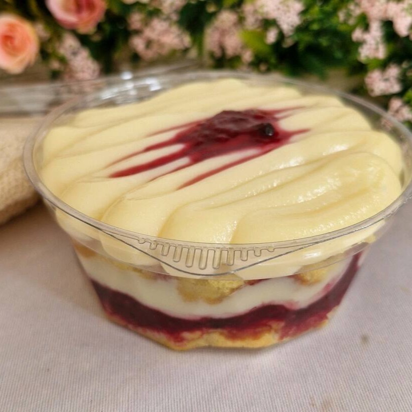 Delicioso pavê com brigadeiro cremoso de leite Ninho, biscoito maizena, geleia caseira de frutas vermelhas e creme de leite Ninho. Pote de 150ml, com peso final aproximado de 190, 200gr.