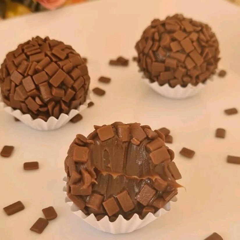 Brigadeiro cremoso de colher de chocolate, finalizado com granulado de chocolate nobre.
