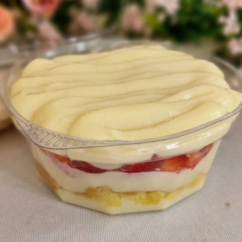 Delicioso bolo de baunilha com massa fofinha e molhadinha, morangos frescos picadinhos e brigadeiro cremoso de leite Ninho. Aprox.: 220gr