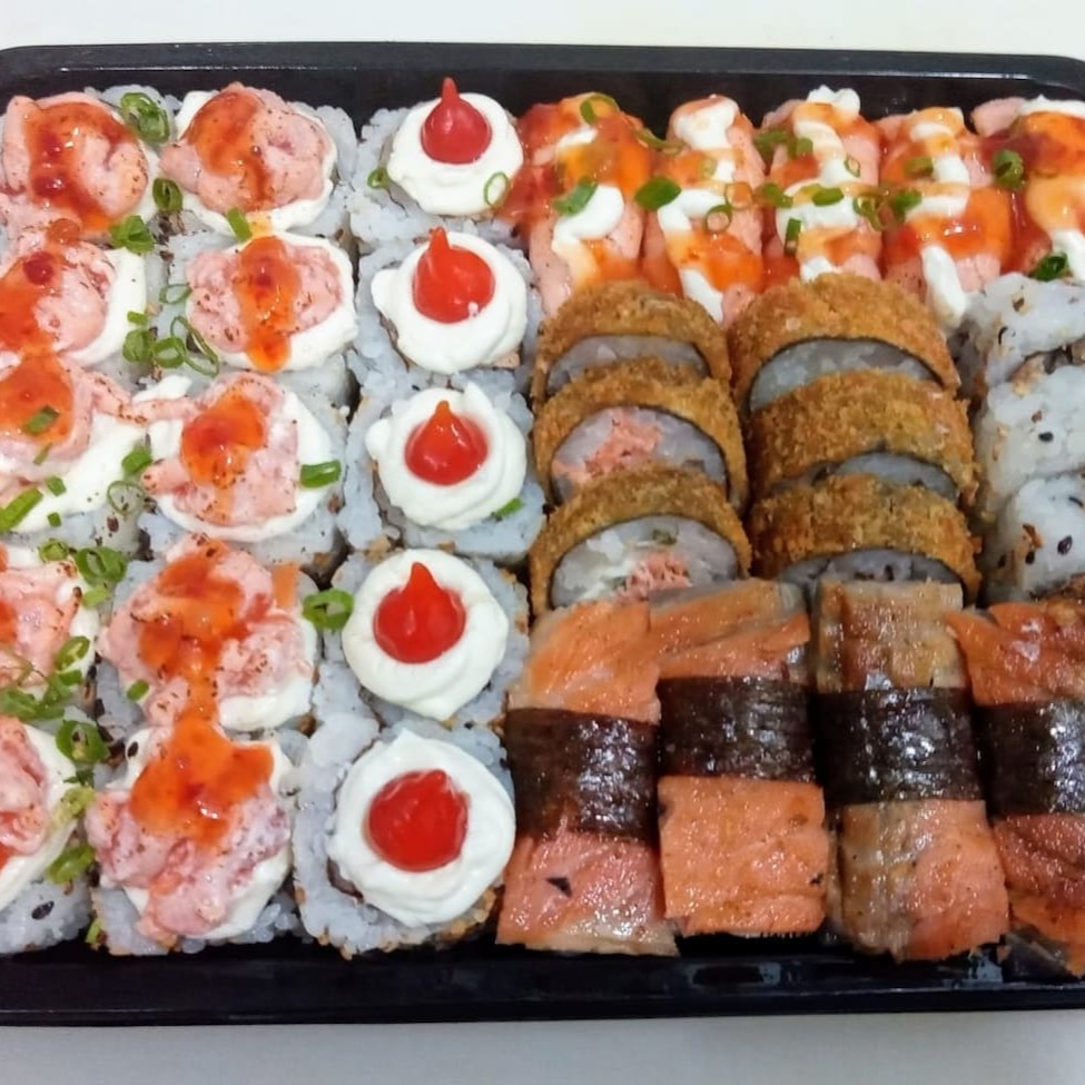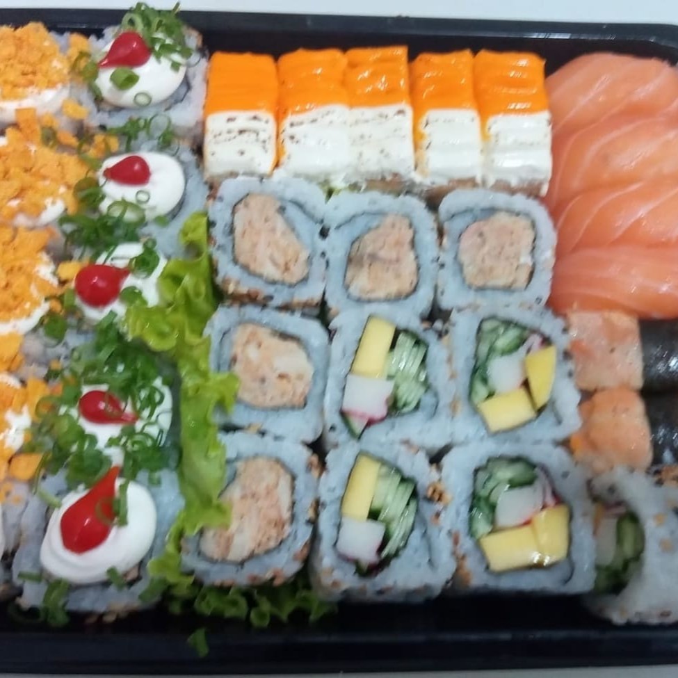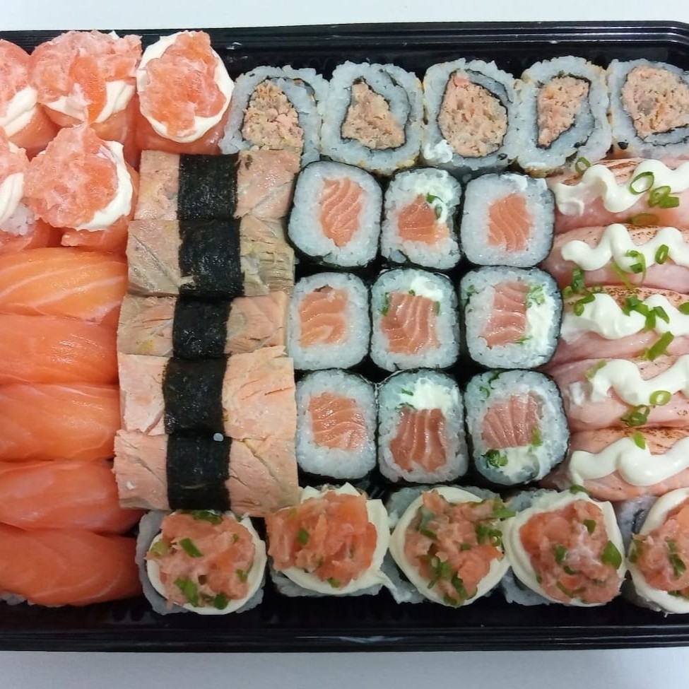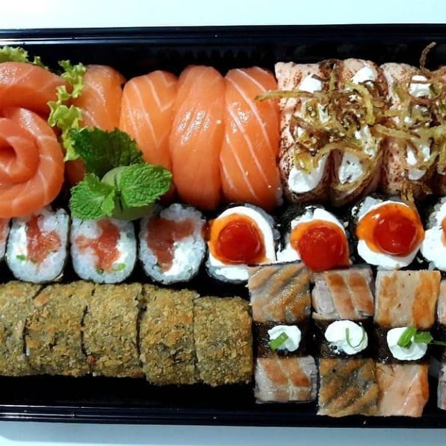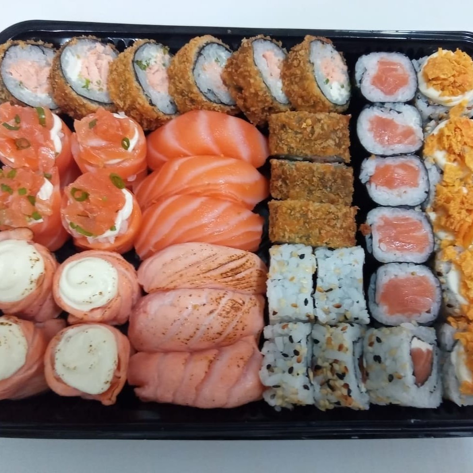 Este Box Atrativo com 38 peças é uma explosão de sabores que celebra o sushi fresco e bem servido. O conjunto apresenta 4 Joe de salmão maçaricado com cream cheese, 4 Joe de salmão filadélfia, 3 Niguiri de salmão, 5 Uramaki de salmão nacho, 5 Maki de salmão e 9 generosas peças de Hot Filadélfia. Cada peça é meticulosamente preparada para garantir a excelência do sabor. O prato é acompanhado por um kit de molhos para aprimorar ainda mais a sua experiência gastronômica. É uma opção perfeita para quem aprecia a arte culinária japonesa e busca uma refeição completa e saborosa.