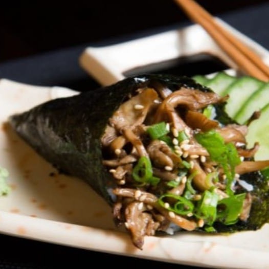 Apresentamos nosso delicioso 'Temaki G 15 Shimeji', um ícone da categoria 'Temakis'. Ele é preparado com Shimeji cuidadosamente temperado, que proporciona um sabor único e marcante. Acrescentamos cebolinha fresca, que agrega um toque especial e aromático ao prato. O arroz, sempre perfeitamente cozido, serve como base para a harmonia de sabores. E para finalizar, envolvemos tudo em uma alga Nori crocante. Uma verdadeira delícia que promete satisfazer os paladares mais exigentes!