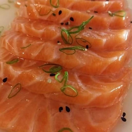 Saboroso Sashimi Especial: uma seleção de seis unidades de sashimi de salmão fresco, cuidadosamente preparadas e pesando aproximadamente 170 g. Este prato é realçado com um toque de azeite de alta qualidade, suco de limão fresco e um misto de ervas aromáticas, finalizado com uma pitada de cebolinha para acrescentar um sabor extra. Este é, sem dúvida, um prato que exalta a frescura e a riqueza dos sabores do mar, oferecendo uma experiência gastronômica única e inesquecível.
