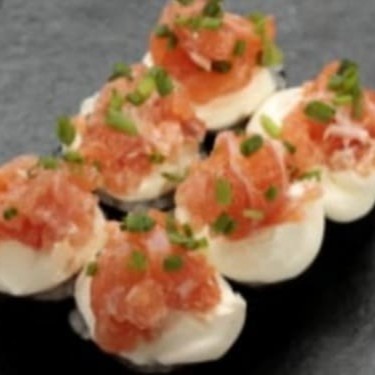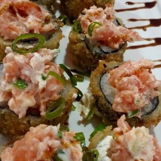 Deliciosas iscas de salmão, cuidadosamente empanadas em uma farinha especial, dando um toque crocante por fora e mantendo o interior macio e suculento. O prato é generosamente regado com uma exótica geleia de pimenta, que adiciona um equilíbrio perfeito entre o doce e o picante. Finalizado com cebolinha fresca e o tempero secreto do nosso chef, esse 'Furai Hot de Salmão' é uma verdadeira explosão de sabores. Ideal para uma refeição leve ou como uma saborosa porção para compartilhar. Aproveite a nossa #promo!