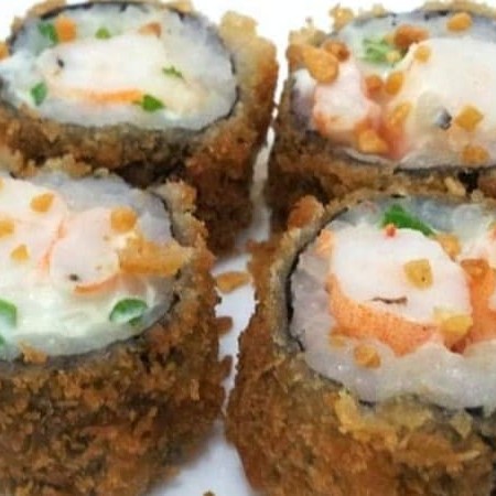 Delicie-se com o nosso 'Hot Camarão', uma exclusividade na categoria 'Monte Seu Sushi Box'. Composto por 10 unidades de camarões frescos e suculentos, cuidadosamente envoltos em uma generosa camada de cream cheese cremoso e macio. Cada unidade é delicadamente finalizada com um toque de cebolinha fresca, agregando um sabor único e vibrante. Este prato é a perfeita combinação de texturas e sabores, tornando-o irresistível e inesquecível. Uma verdadeira experiência gastronômica esperando por você!