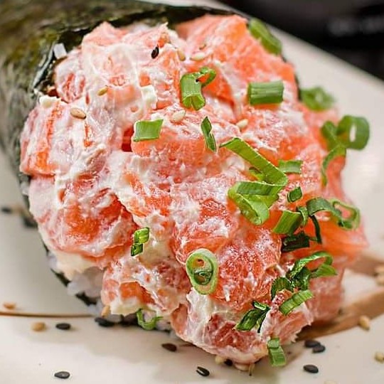 Fatias de salmão recheio cream cheese sem arroz