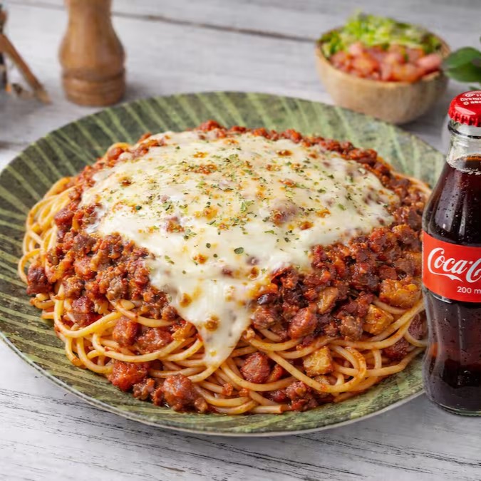 Macarrão À Bolonhesa Com Queijo Derretido + Coca-cola Geladinha