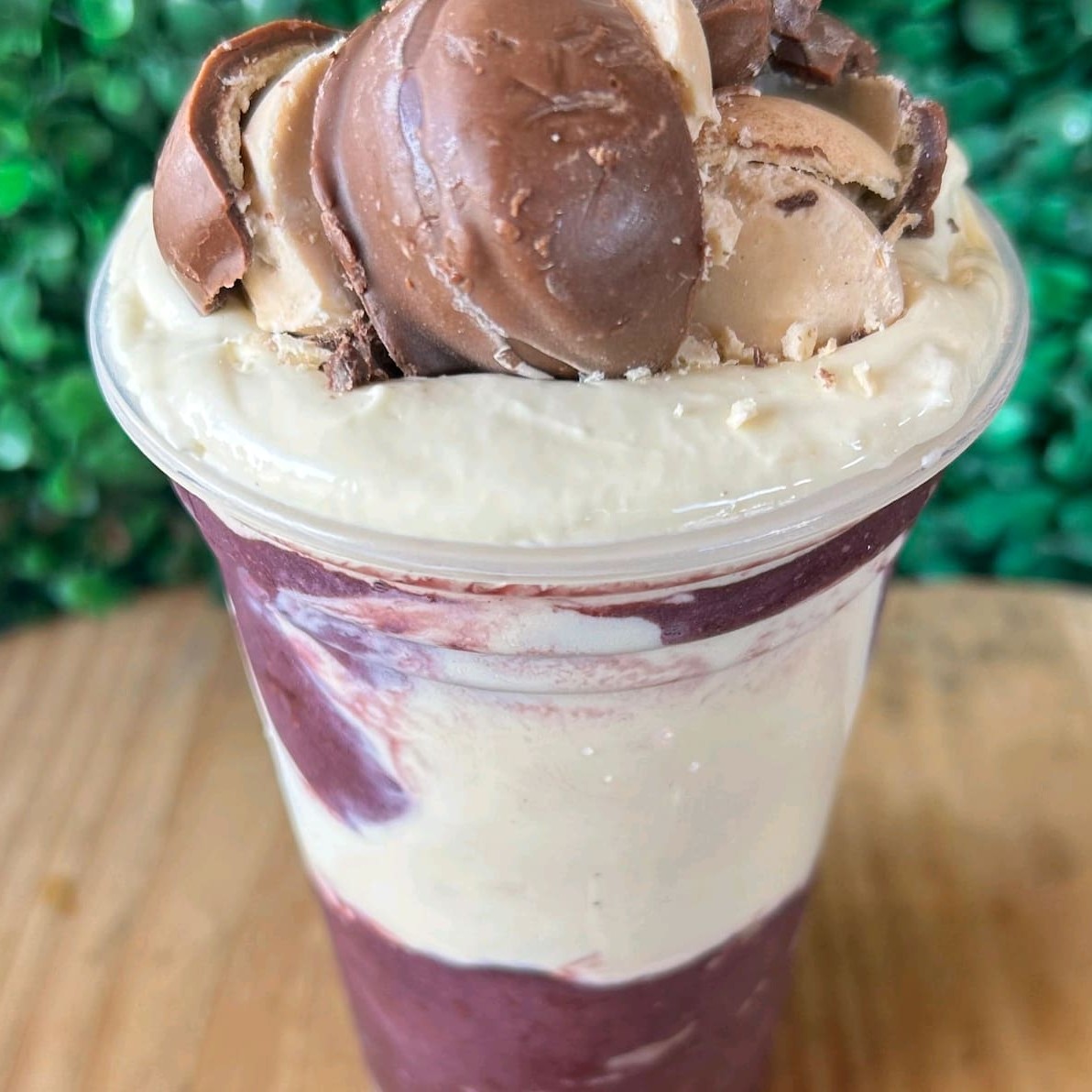 Copo 700 ml Vitamina de açaí 3 camadas de recheio Rafaello 2 bombons