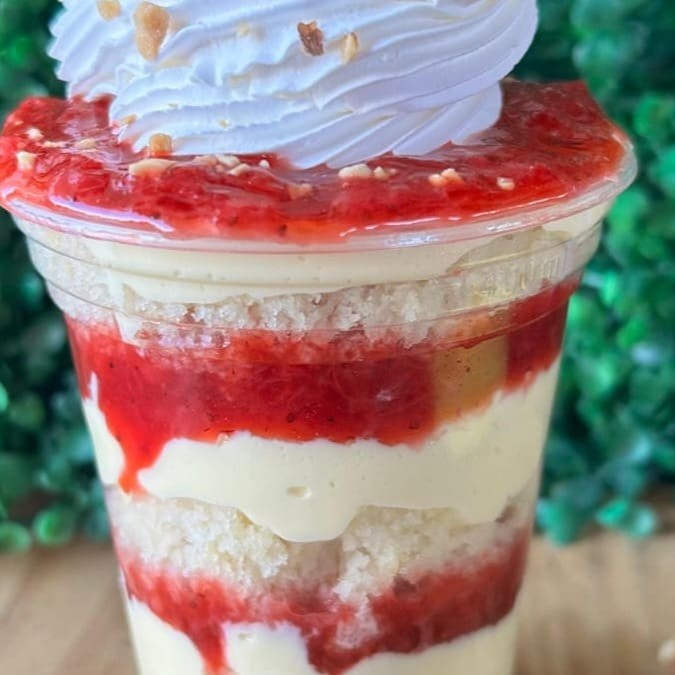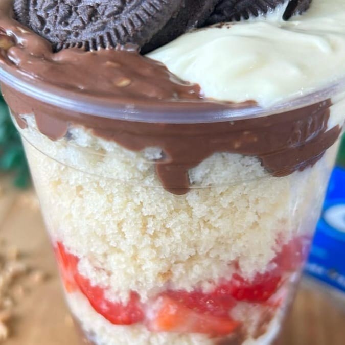 Copo 400 ml Bolo Creme Ninho Geleia de morango Chantily Amendoim triturado