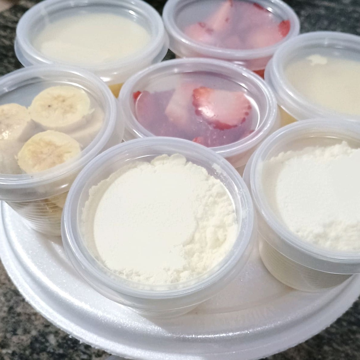 1 Kilo De Acai ( 1000 Litros) Pote 100 Ml - Morango Pote 100 Ml - Leite Condensado Pote 100 Ml - Leite Em Po Pote 100 Ml- Banana 1 Granola