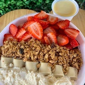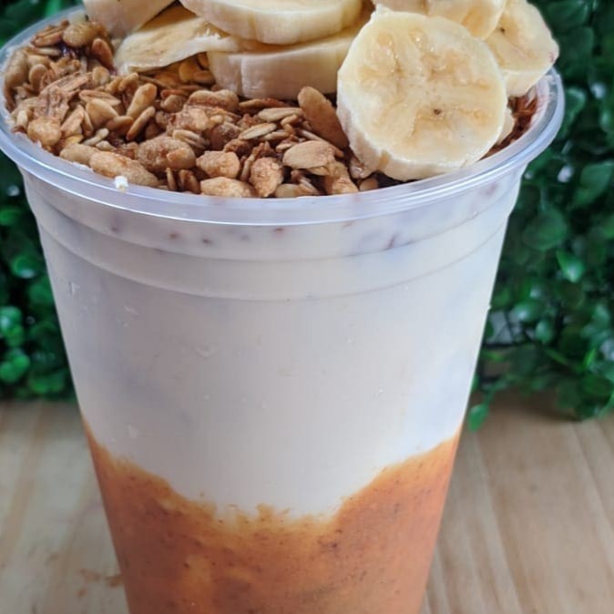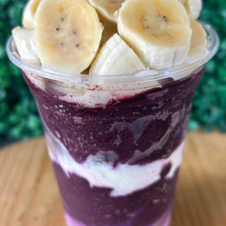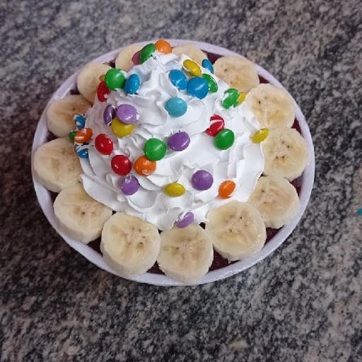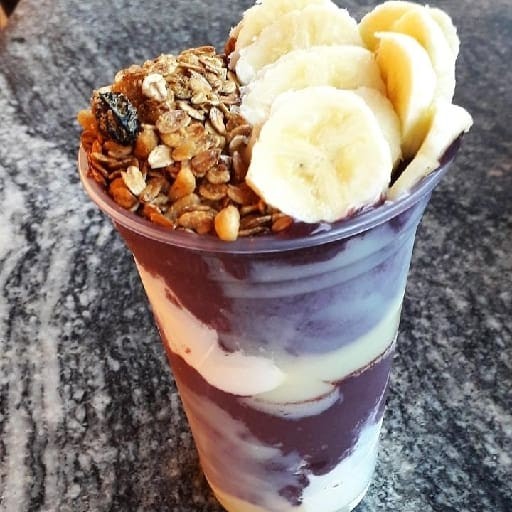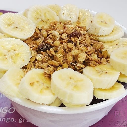 Cumbuca de 500 ml com creme de açaí ,leite condensado ,leite em pó ,banana e granola