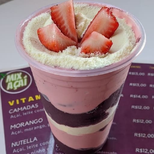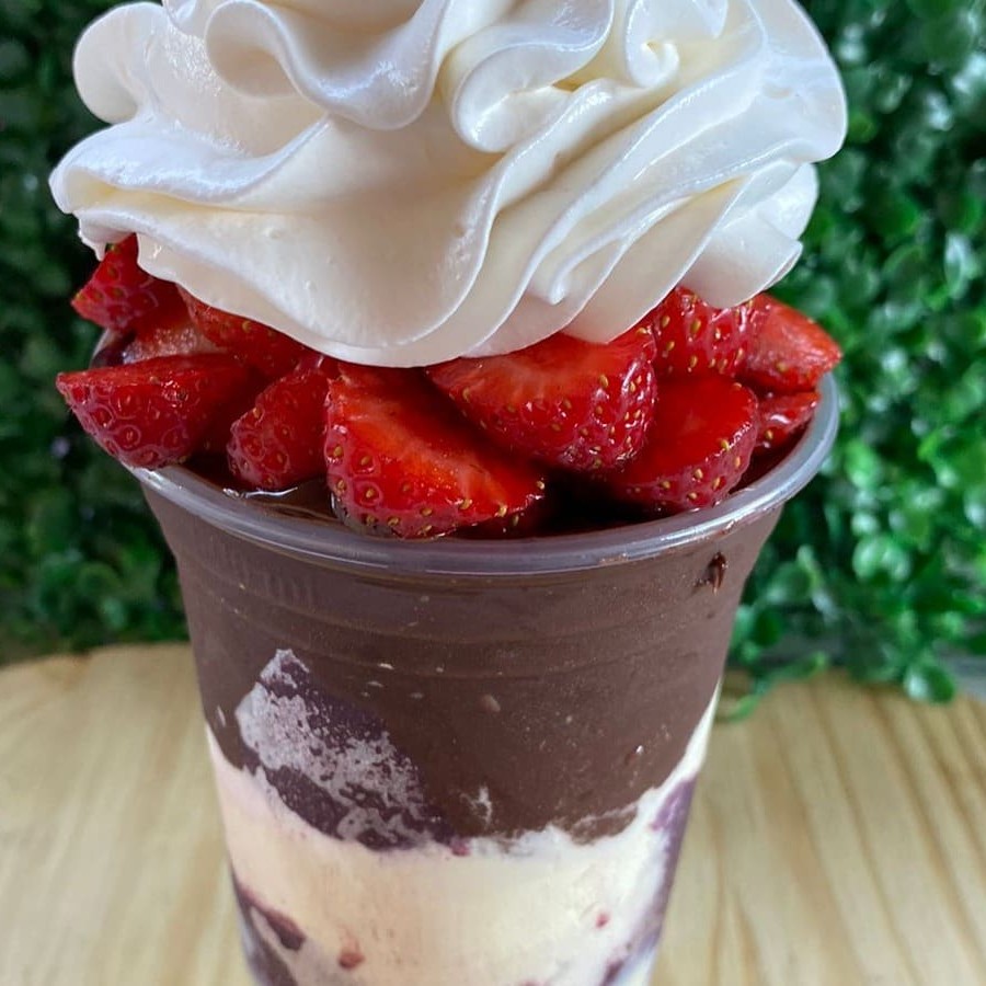 Creme de acai, leite em pó leite condensado morango chocolate biss