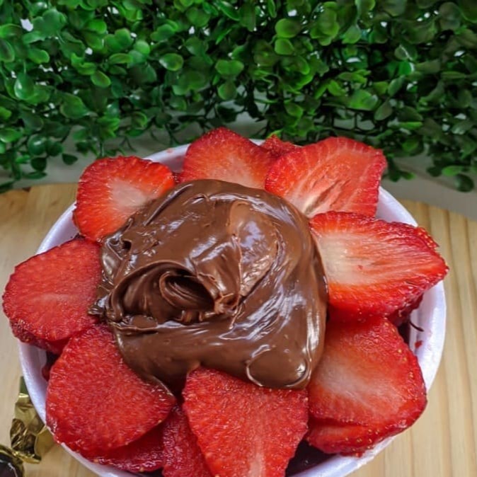 Cumbuca De 500 Ml Leite Em Po Creme De Morango Paçoca Nutella Morangos Frescos