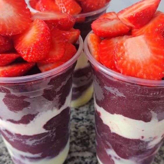 Acai Em Camadas Com Biss E Morango( 4 Acompanhamentos)