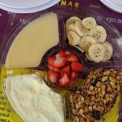 Copo 500 ml,açaí + leite em pó+ leite condensado+ banana ( tudo separado)