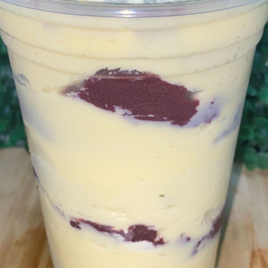 02 copos de 500 ml com creme de acai Leite condensado Leite em pó Banana Confete