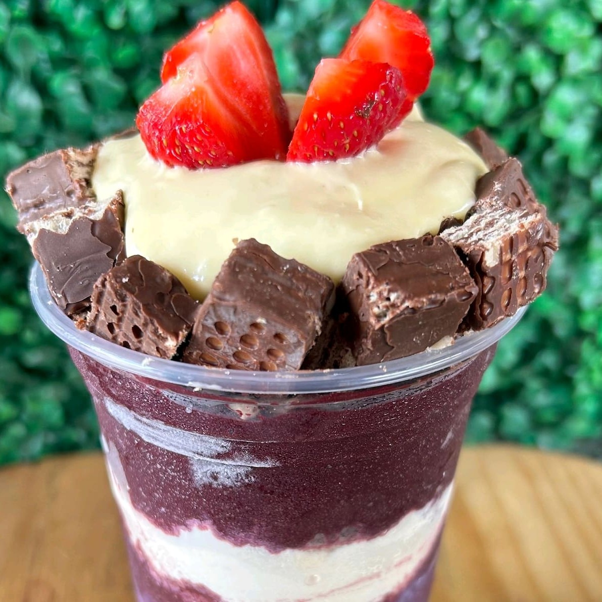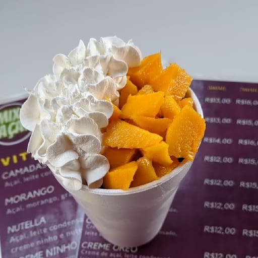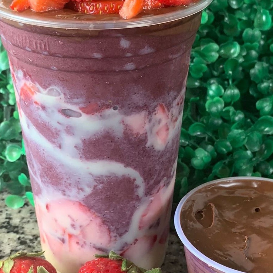 Creme de açaí copo de 500 ml Leite condensado Leite Ninho Morango Chantily.