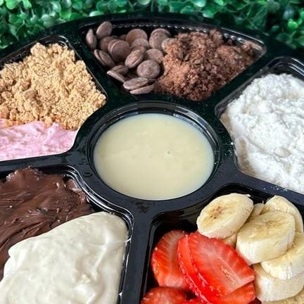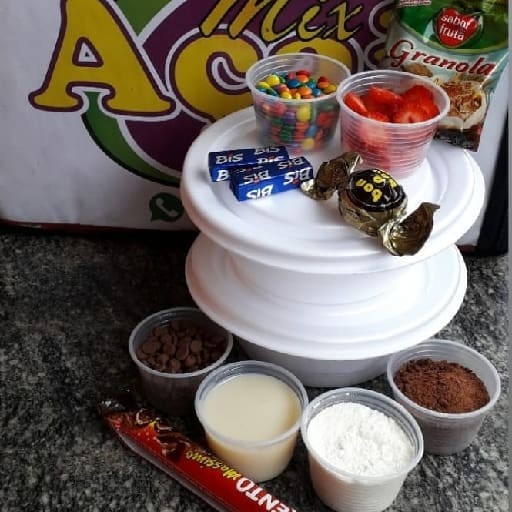 2 marmitas 1 kilo com creme de acai 1- Nutella 2- Creme Ninho 3- Chantily 4- Ovomaltine 5- M&Ms 6- Banana 7- Morango 8- Leite em po 9- Leite condensado 10- Creme de maracuja