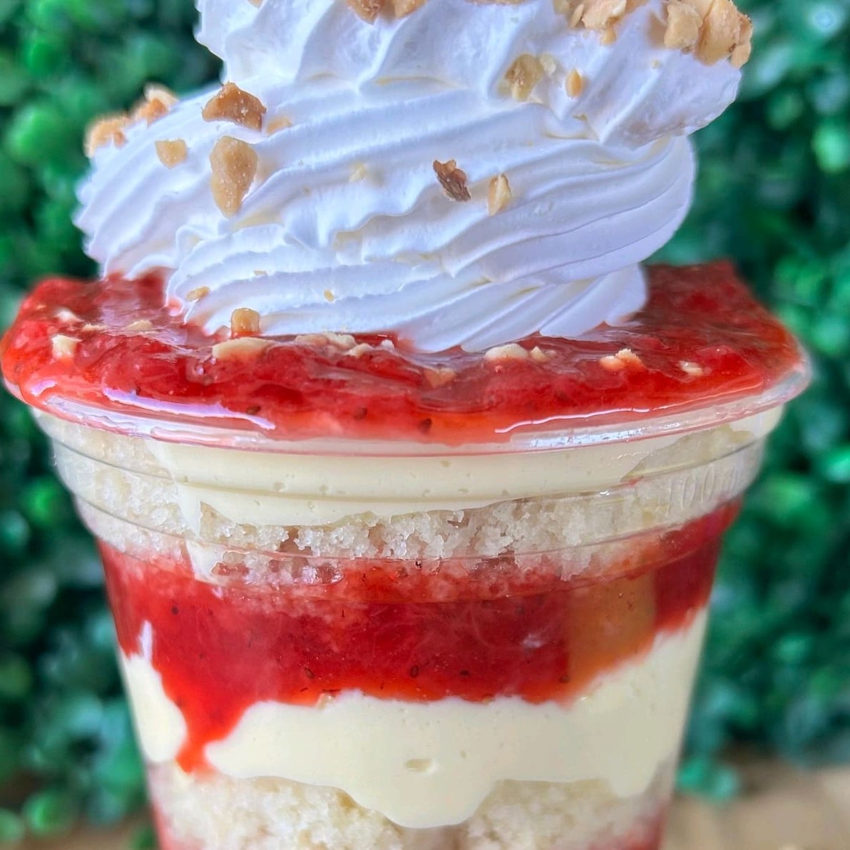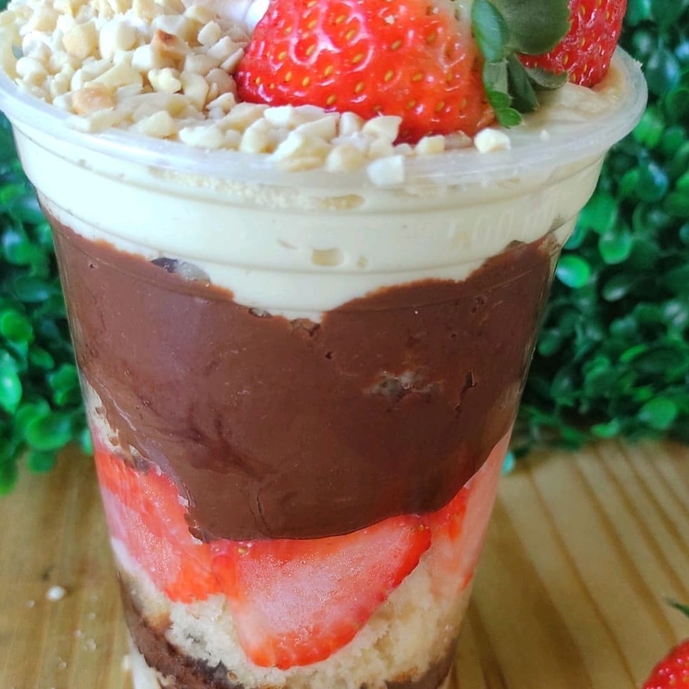 Copo 400 ml Bolo Creme Ninho Geleia de morango Chantily Amendoim triturado