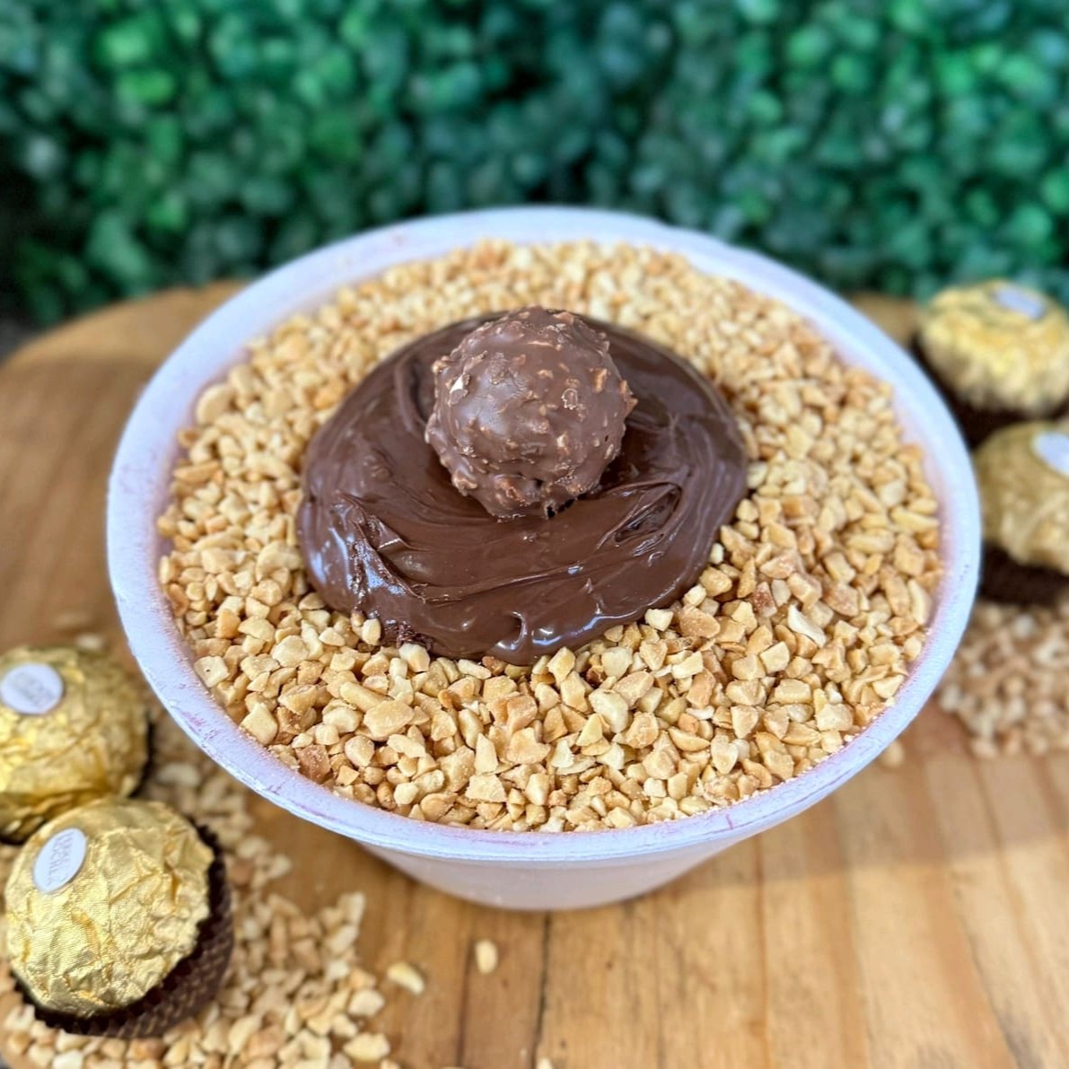 Cumbuca 500 ml,leite em pó,amendoim triturado,Nutella e Ferrero Rocher