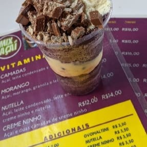Copo de 500 ml Creme de açaí Leite condensado Leite em pó Ovomaltine Nutella