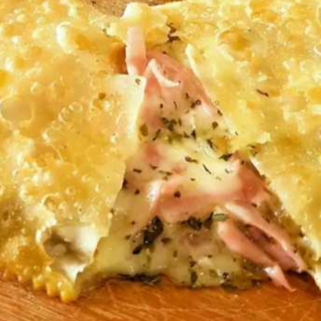 Aquele delicioso pastel de pizza com presunto, mussarela e orégano