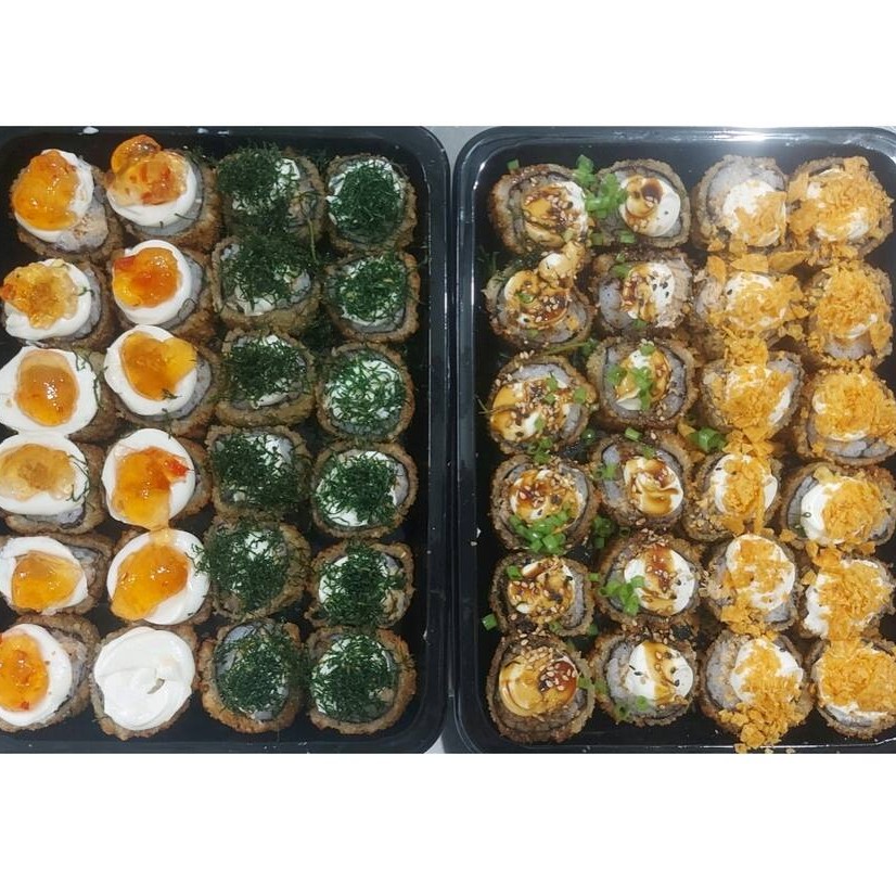 6 Niguiri de Salmão, 6 Niguiri de Pele 6 Niguiri Camarão, 6 Maki Salmão, 6 Uramaki Filadélfia, 6 Hot Grelhado Com Couve e 6 Hot Grelhado Com Doritos. Este Pedido Acompanha 3 Hashi, 6 Shoyu, 1 Tare 30g, 1 Nozoki.