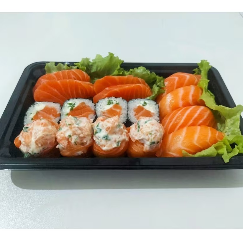 4 Niguiri Salmão, 4 Maki Filadélfia, 4 Djoe Filadélfia e 4 Sashimi de Salmão