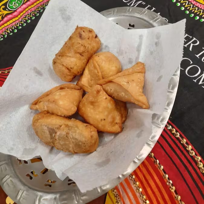 Pastel recheados com batata , ervilha e especeiarise indiana nao acompanha chutny