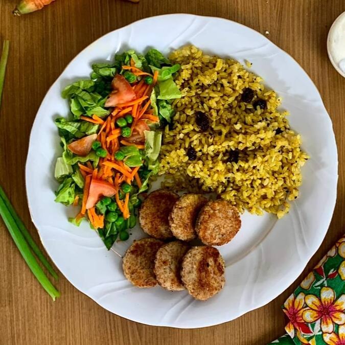 Salpicão Com Arroz Integral E Bife A Escollher | Vegano