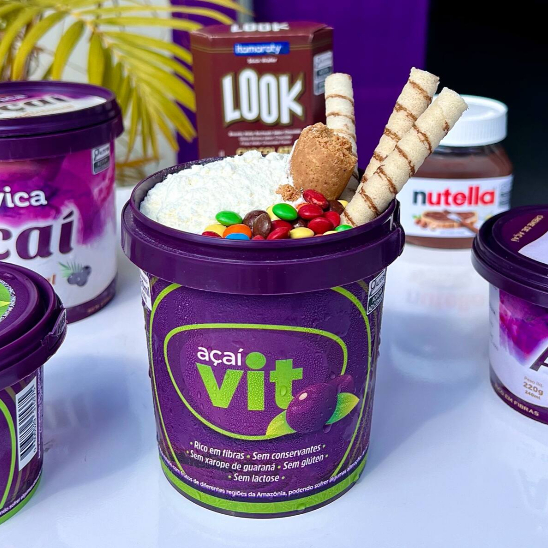 O açaí Vit é o açaí perfeito pra quem gosta de doçura! Mais docinho e cremoso! Sem xarope de Guaraná Sem glúten Sem lactose
