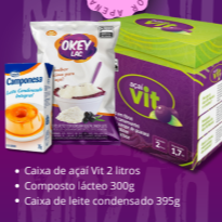 Kit Mozão Preparado para você saborear com quem você ama, o "Kit Mozão" é completo para vocês. Composto por: Caixa de 2 litros de Açaí Premium Vit 300g de composto lácteo 1 caixa de leite condensado 395g Você não vai encontrar esse kit em outro lugar. Aproveite!!! Serve 4 pessoas