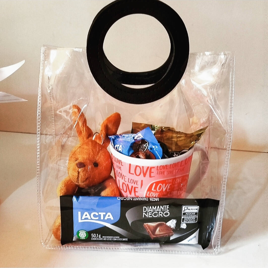 Essa linda cesta vem em uma elegante bolsa transparente com alça, perfeita para surpreender logo no primeiro olhar! Dentro, você encontra uma combinação irresistível: um ursinho super fofo 🧸, uma caneca temática cheia de amor ❤️ recheada com chocolates deliciosos, incluindo o clássico Diamante Negro, além de outras gostosuras que tornam esse presente ainda mais especial. ✨ Ideal para presentear quem você ama em qualquer ocasião — aniversário, surpresa romântica ou simplesmente para demonstrar carinho. 💌 Um mimo completo, pronto para emocionar e adoçar o dia de alguém especial!
