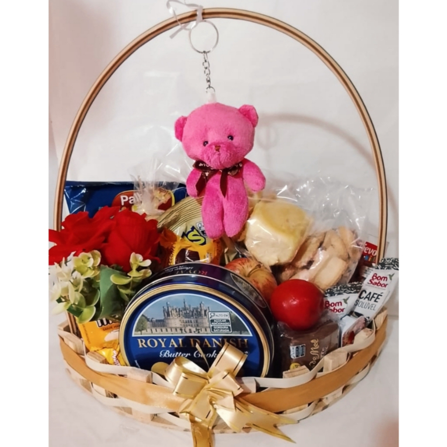 Surpreenda alguém especial com uma linda cesta de café da manhã completa, perfeita para começar o dia com carinho e sabor! 💝 Montada em cesta decorativa em formato de folha, acompanha diversos itens deliciosos e um toque romântico com ursinho e rosas, tornando o presente ainda mais encantador. ✨ A cesta contém: Biscoito de polvilho Sequilhos Pão de mel Achocolatado Água de coco Batata chips Geleinha Café solúvel Torradas Bolinho Pão doce 1 fruta fresca Lata de biscoitos amanteigados Royal Dansk Butter Cookies Rosquinhas Chocolate Teens Ursinho decorativo Rosas decorativas 🎀 Um presente completo, lindo e delicioso, ideal para aniversários, datas especiais ou para surpreender quem você ama logo pela manhã.