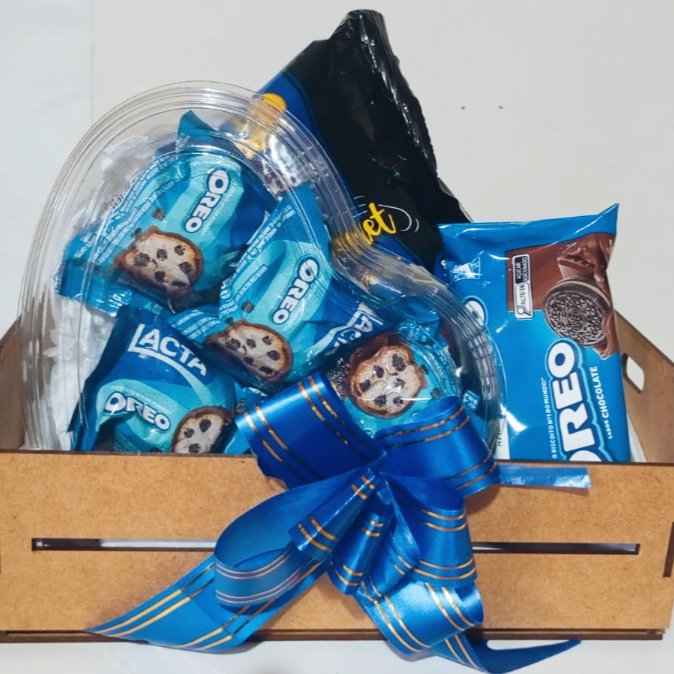 Surpreenda com essa cesta temática Oreo, perfeita para adoçar o dia de alguém especial! Um presente moderno, delicioso e cheio de charme 😍 ✨ Contém: 🍫 Coração acrílico recheado com chocolates Oreo 🍪 Snacks Oreo variados 🎁 Caixa em MDF com acabamento elegante 🎀 Laço azul sofisticado, dando o toque final de presente premium 💝 Ideal para aniversários, datas especiais ou simplesmente para dizer “lembrei de você”. Um presente que conquista no visual e apaixona no sabor!