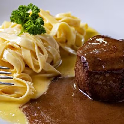 Novidade! Delicioso prato que leva tornedor de filé mignon ao molho de carne, com fettuccine ao molho quattro formaggio, um molho super suave de quatro queijos.