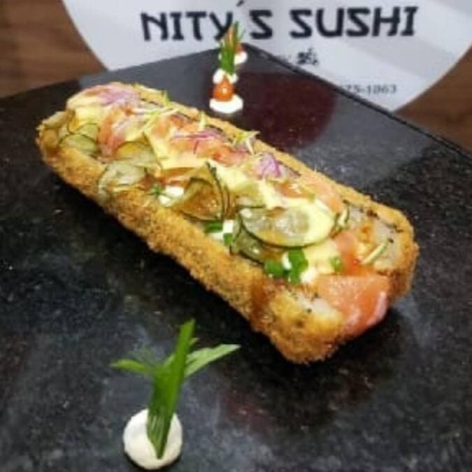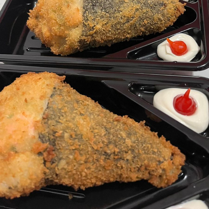 Temaki hot Filadélfia ---> Arroz, salmão, cream cheese, cebolinha - empanado e frito