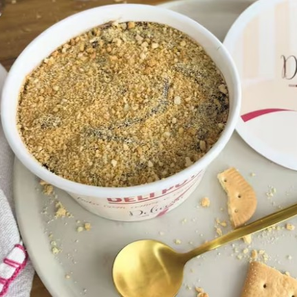 Forrado em camadas com nosso amado bolo búlgaro, sorvete soft no sabor baunilha e geleia cremosa de morango.