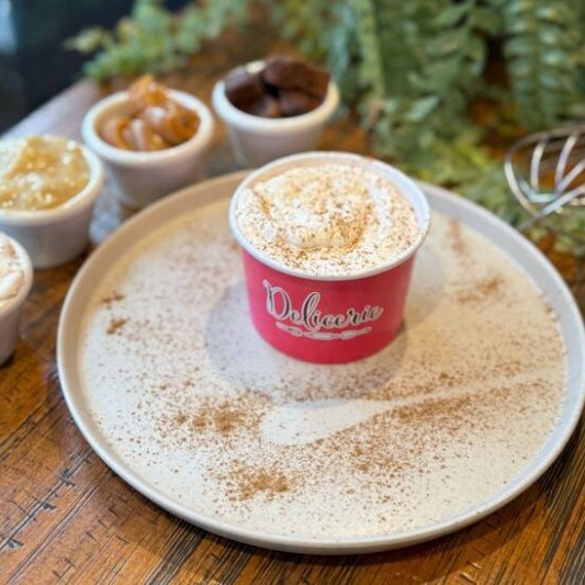 Forrado em camadas com nosso amado bolo búlgaro, sorvete soft no sabor baunilha, goiabada cremosa e queijo canastra.