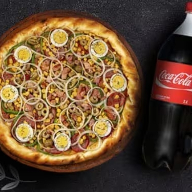 Pizzas preparadas com massa artesanal, assadas no ponto certo, com molho de tomate caseiro, muçarela derretida e ingredientes selecionados. Escolha seu sabor favorito e aproveite uma refeição completa, perfeita para o almoço ou jantar. Entrega grátis disponível e promoção especial por tempo limitado. Ideal para dividir ou saborear sozinho! Coca-Cola 1