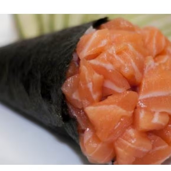 Sabores temaki : salmão, salmão grelhado, skin, filadélfia e hot filadélfia.