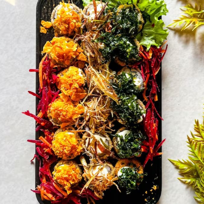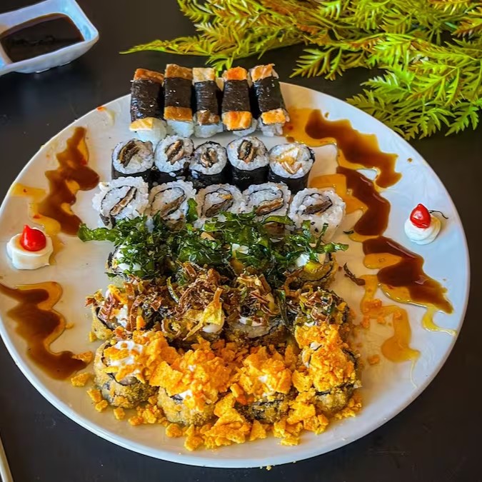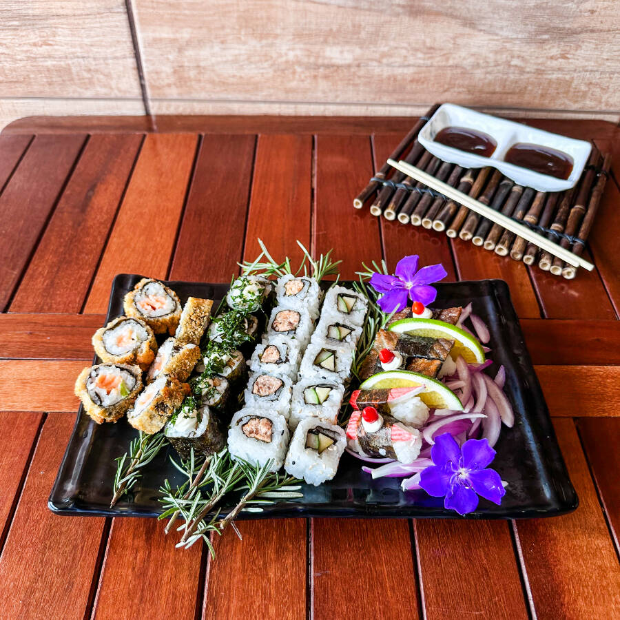 5 sushi skin, 5 maki skin,5 uramaki skin, 4 hot filadelfia com Doritos , 4 hot filadelfia com alho poró, 4 hot filadelfia com couve.