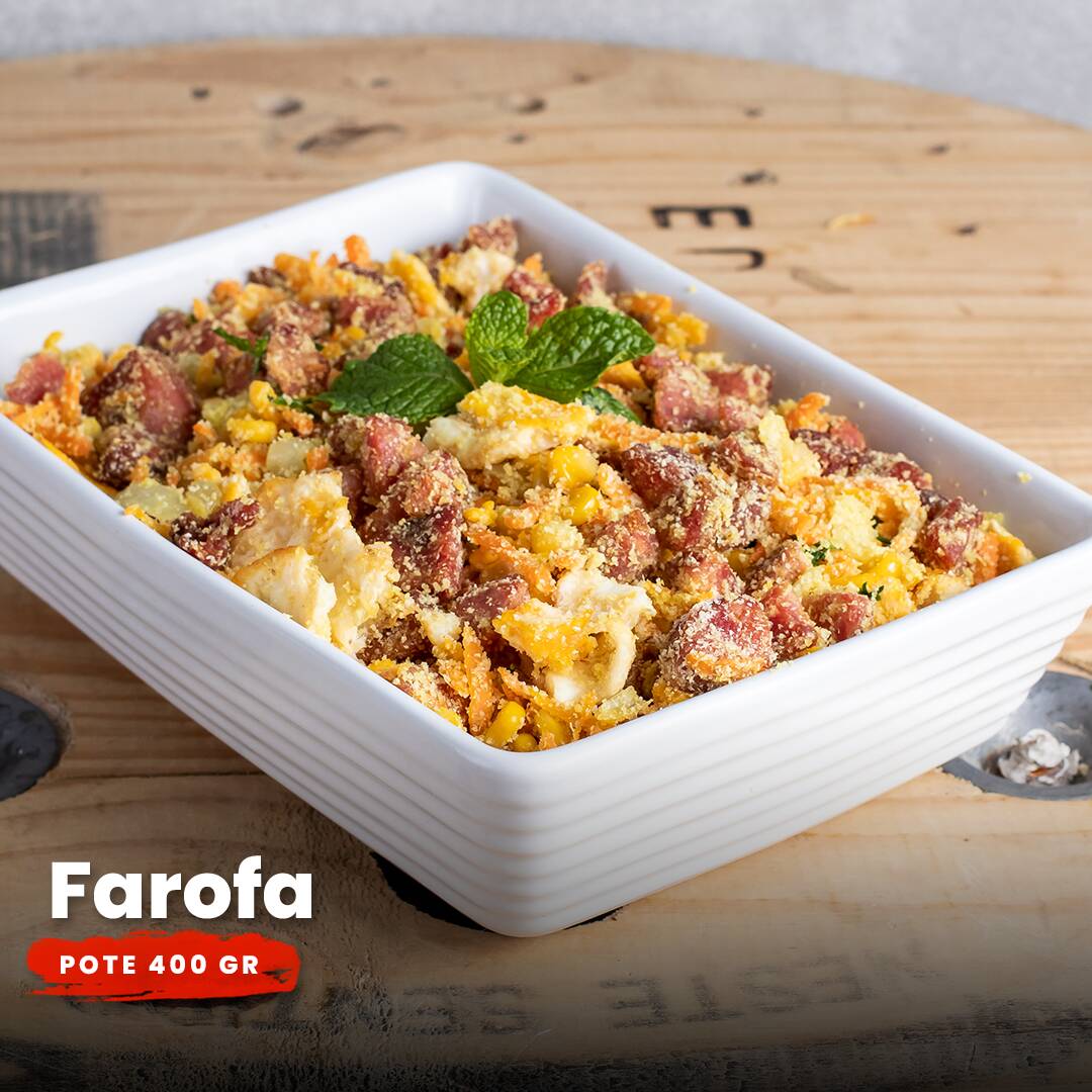 Farofa Natalina especial do O frangueiro com calabresa, cenoura ralada,ovo e cheiro verde.