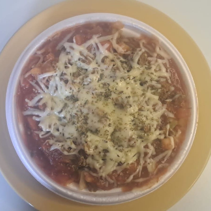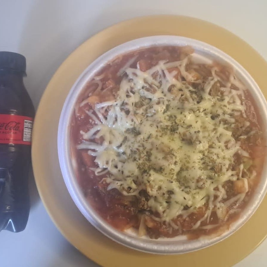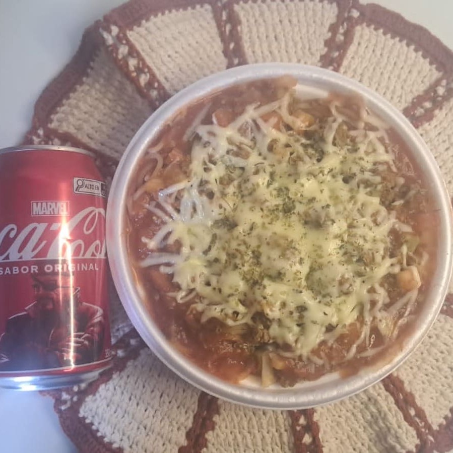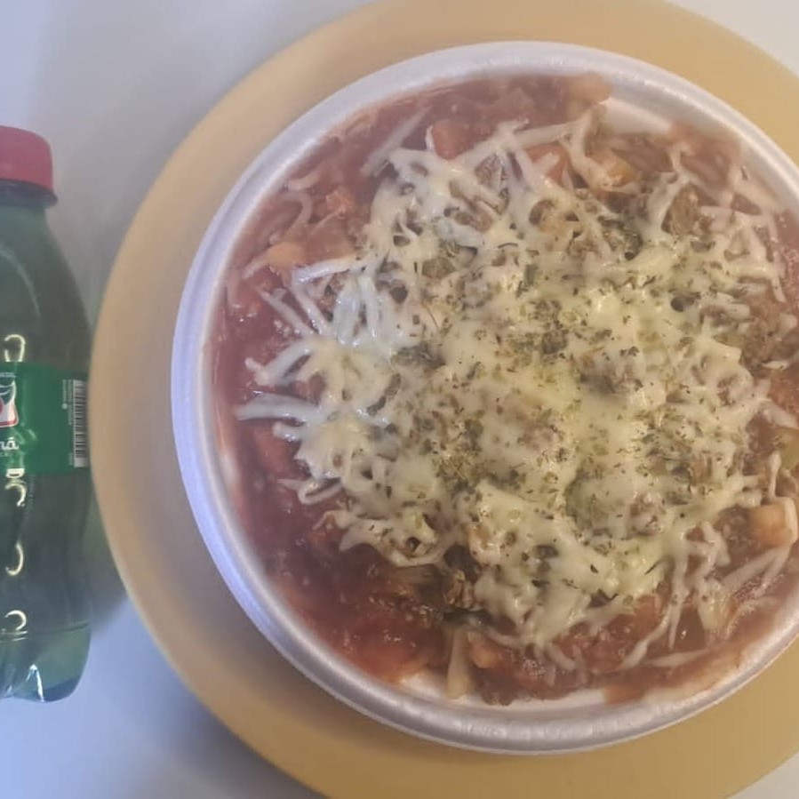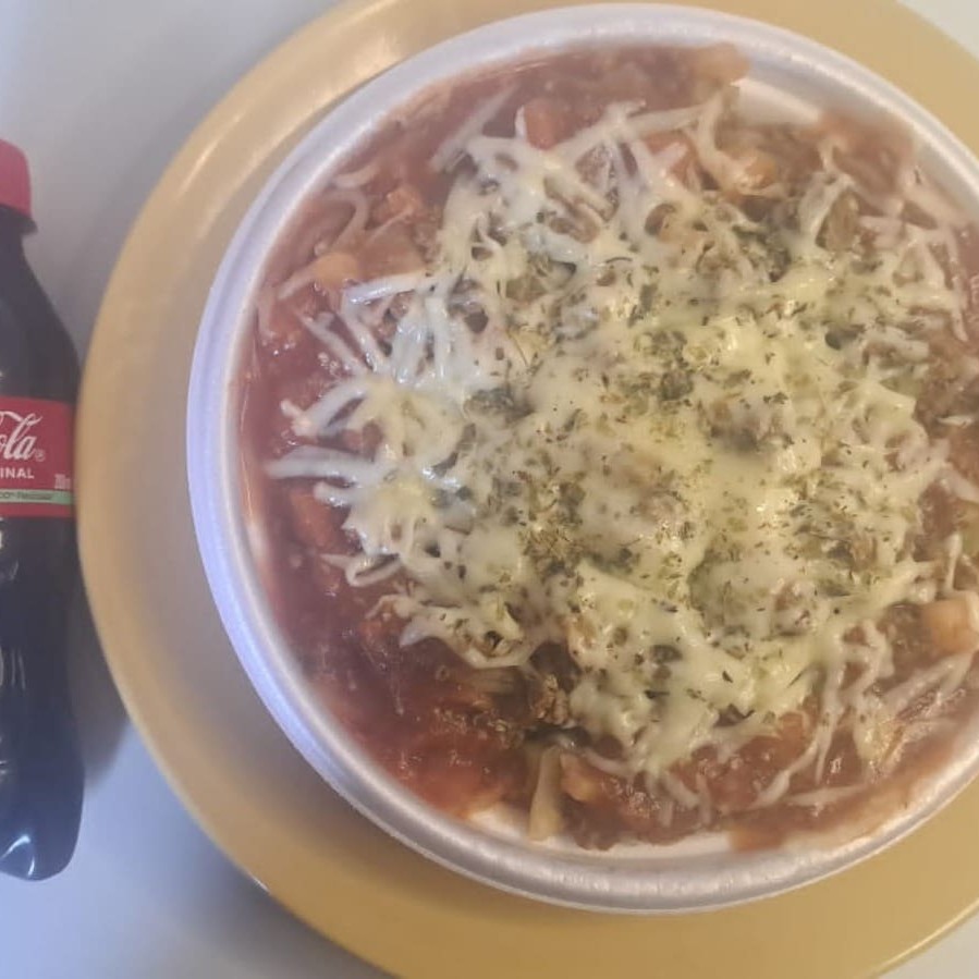 Marmita de delicioso macarrão a bolonhesa, com molho de carne moída encorpado e mussarela derretida Marmitex 500ml Marmita indicada para 01 pessoa.