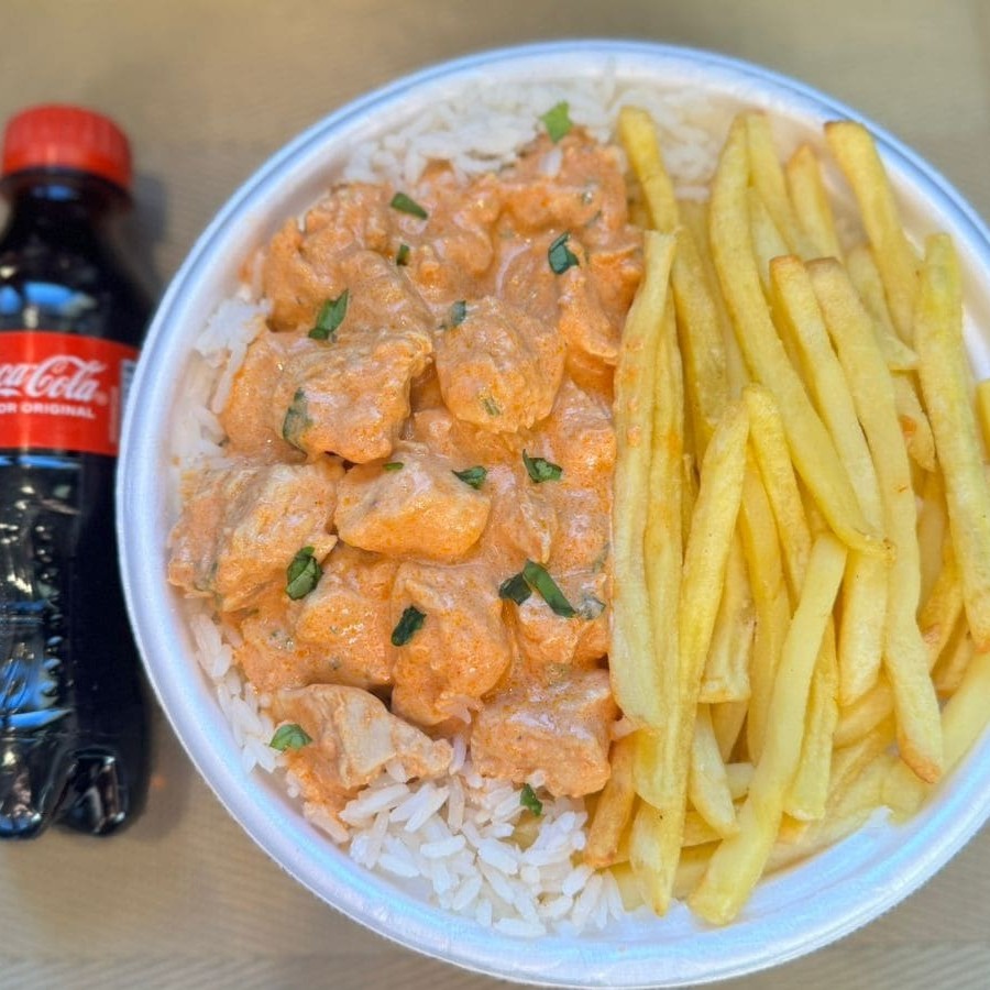 Strogonoff Frango & Fritas + Coca Pet
