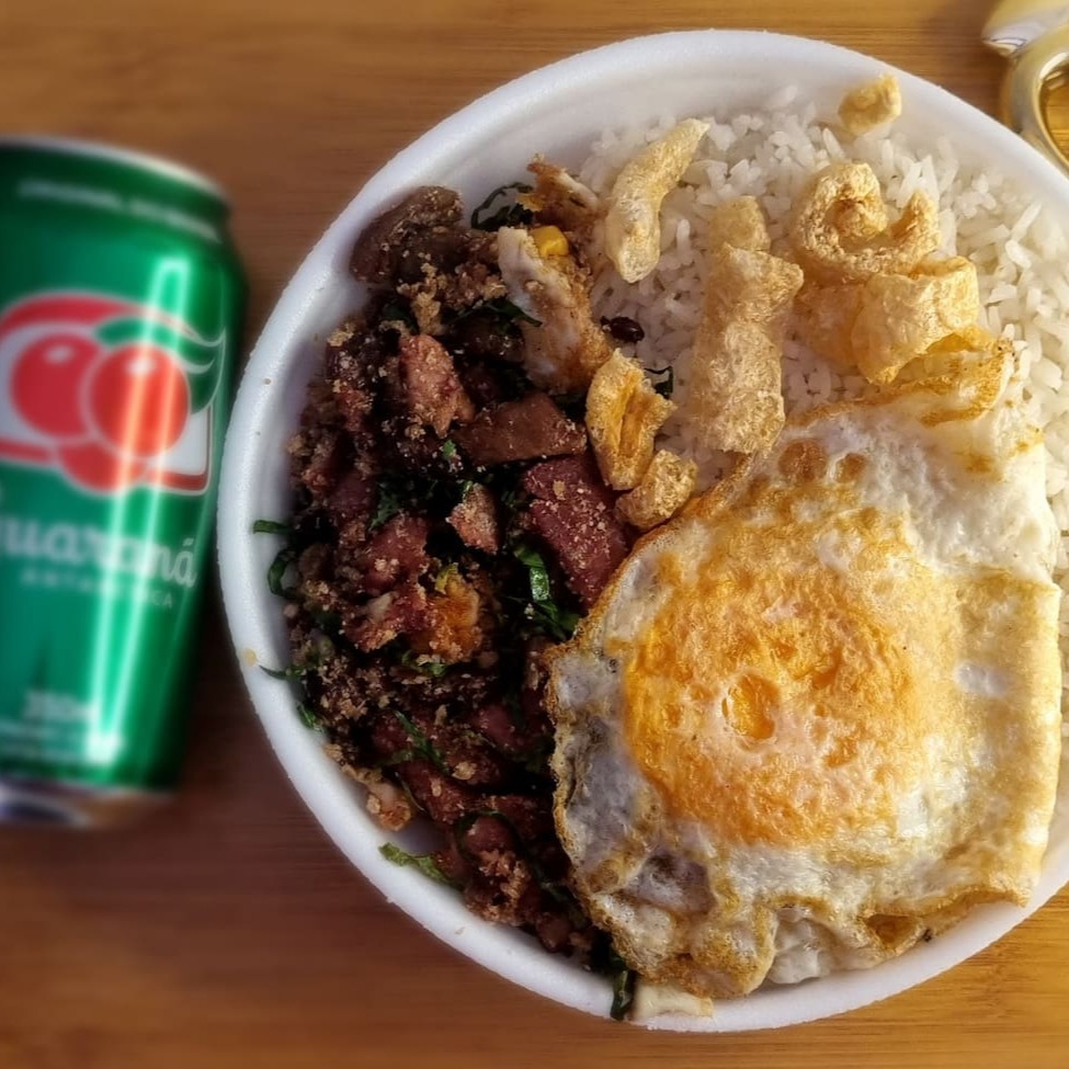 Tropeiro Com Ovo Frito E Pernil + Lata Guaraná