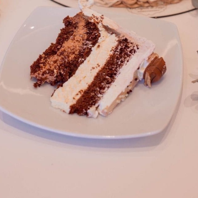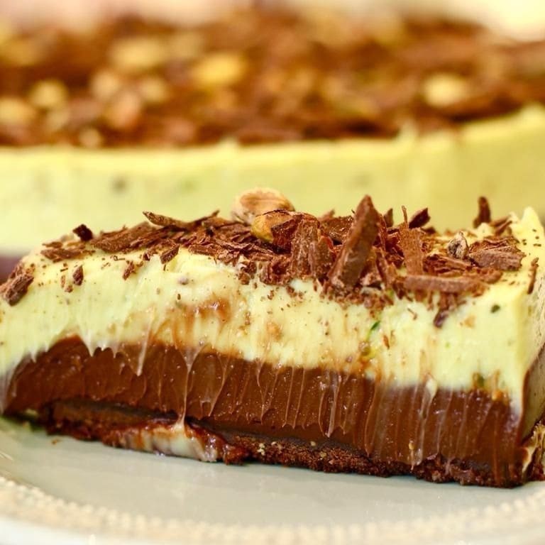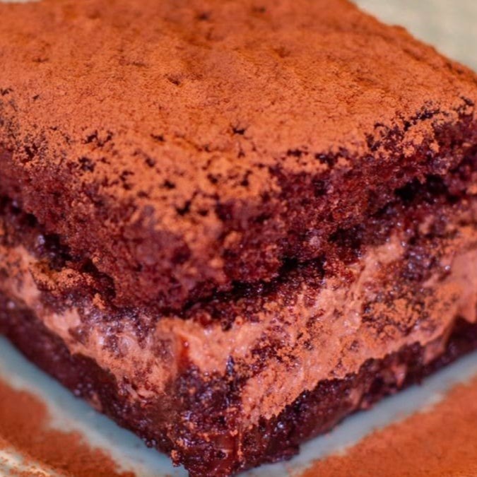 Massa de chocolate bem molhadinha com mousse de chocolate meio amargo e creme de avelã.