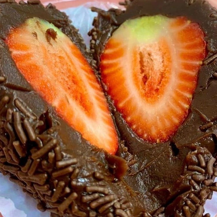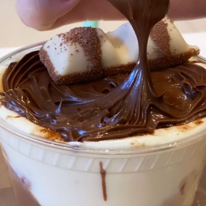 Mousse de leite em pó, mousse alpino, nutella, e morangos, 250 ml.