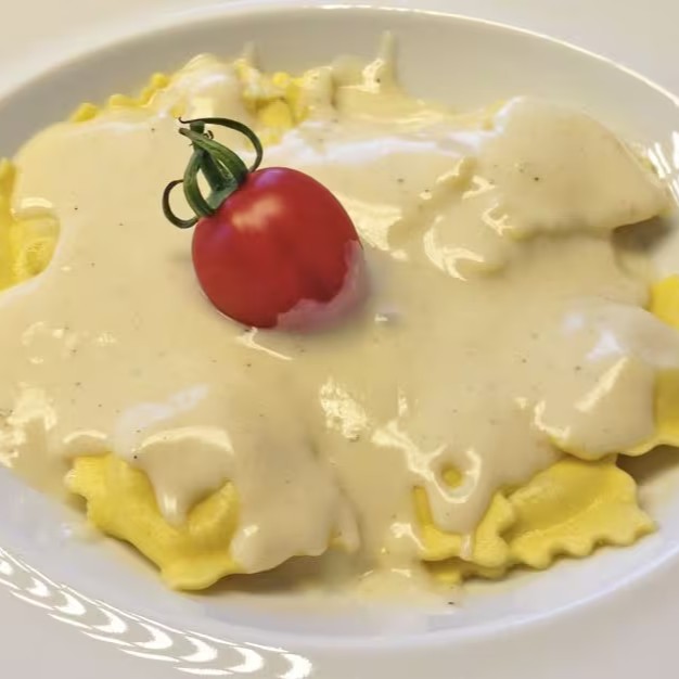 Ravioli de Banana com Parmesão ao Molho Bechamel Especial.